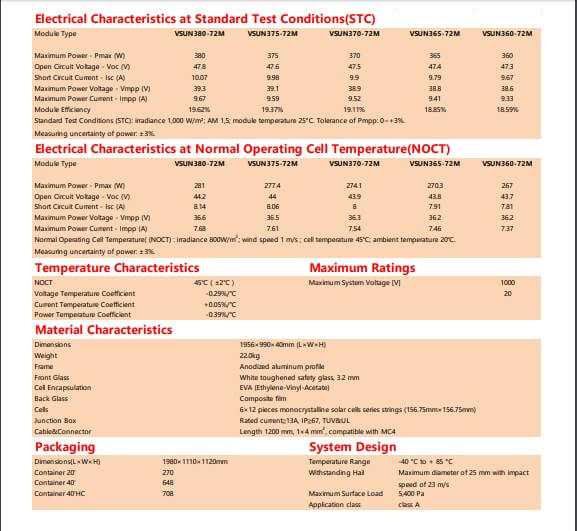 Tấm pin năng lượng mặt trời VSUN 370W-72M Mono PERC: