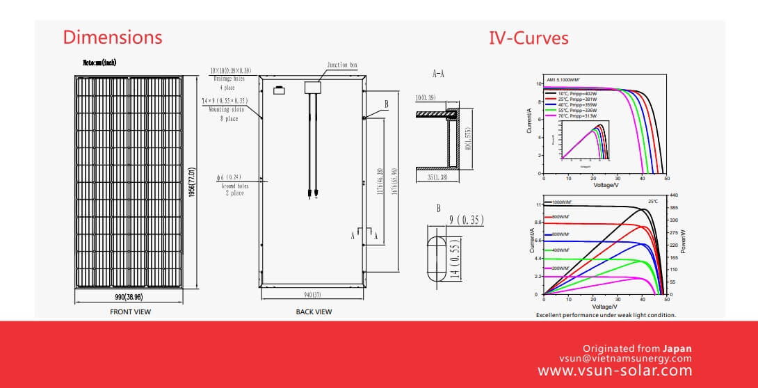– Chứng nhận: UL1703, IEC 61215, IEC 61730 Rated to 1000 V;